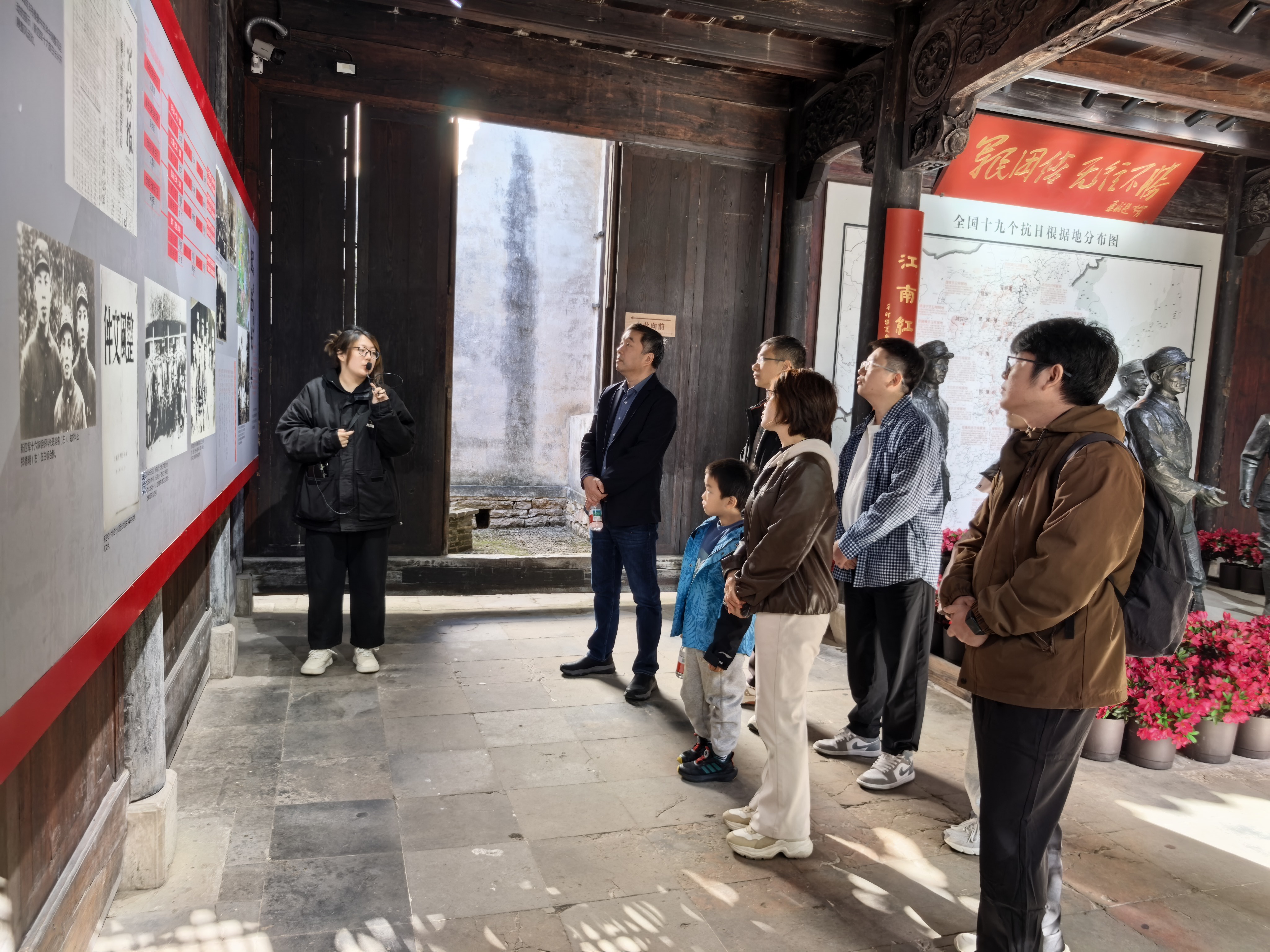 新四军苏浙军区旧址位于长兴县煤山镇,三面环山、地势险要,是江南保存最完整、内涵最丰富、规模最大的革命旧址群之一,被誉为“江南小延安”。支部党员在讲解员的带领下,参观了纪念馆基本陈列,透过大量革命文物、历史资料和珍贵影像,重温那段硝烟弥漫、波澜壮阔的革命岁月,深刻感受新四军将士不畏艰险、英勇顽强的斗争精神。