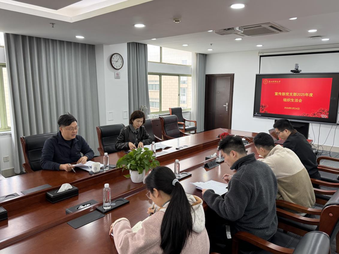 为深入学习贯彻党的二十届四中全会精神,切实引导全体党员牢固树立和践行正确政绩观,3月24日,宣传部党支部在行政楼508会议室召开2025年度组织生活会暨理论专题学习会。会议由党支部书记王正新主持,支部全体党员参加会议。