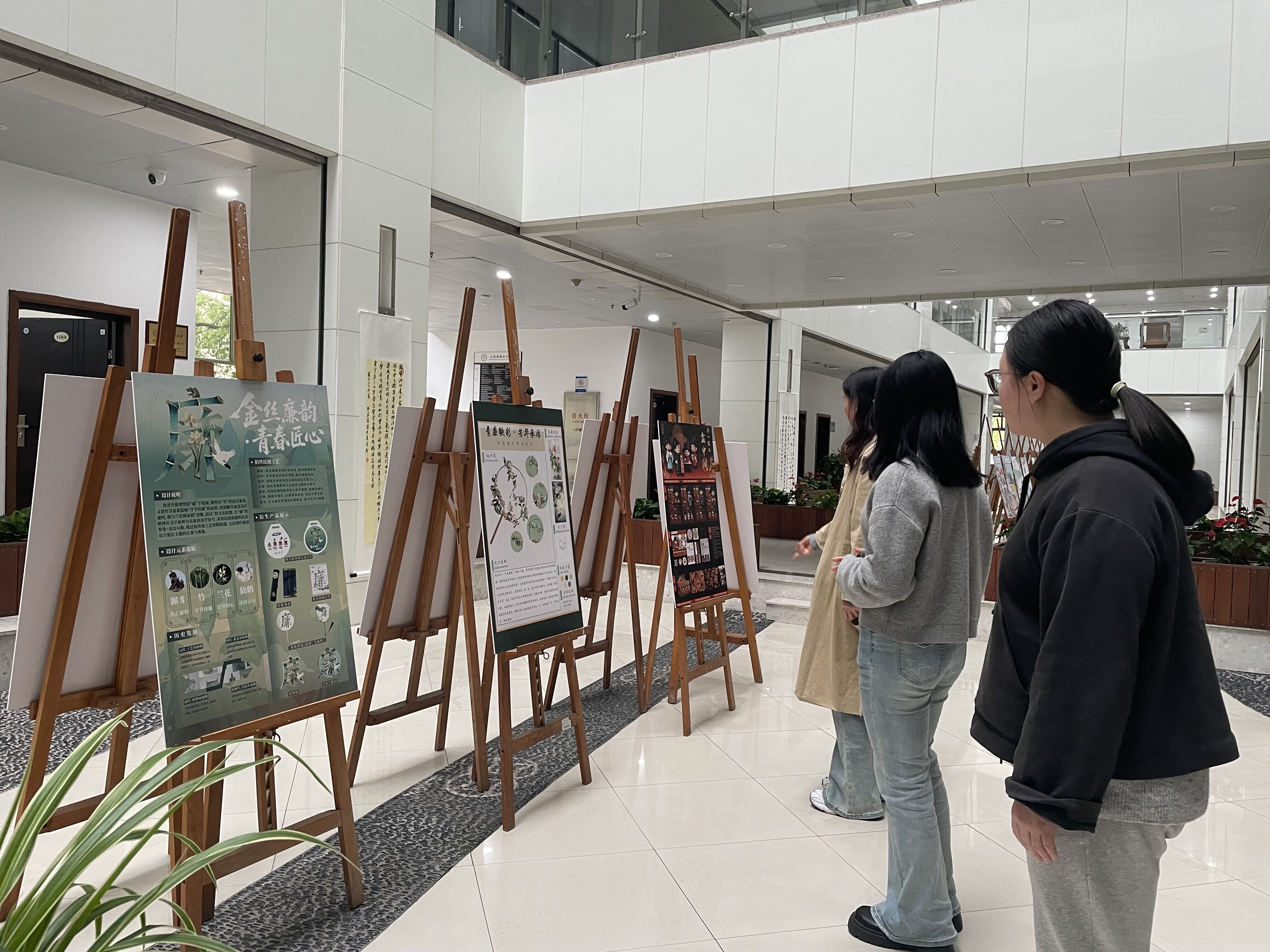 集中学习后,支部党员依次参观了“清风莲语”与“青春廉潮”两大展区。大家驻足细品,交流感悟。“清风莲语”展区展出了我校离退休老干部的廉洁书画作品,老同志们以笔墨寄情,传递着老一辈浙财人历久弥坚的风骨与期许;“青春廉潮”展区呈现了第八届浙江省大学生乡村振兴创意大赛专项赛的优秀设计,青年学子以创意融合传统美学与乡土情怀,为廉洁文化赋予青春表达的创意实践。