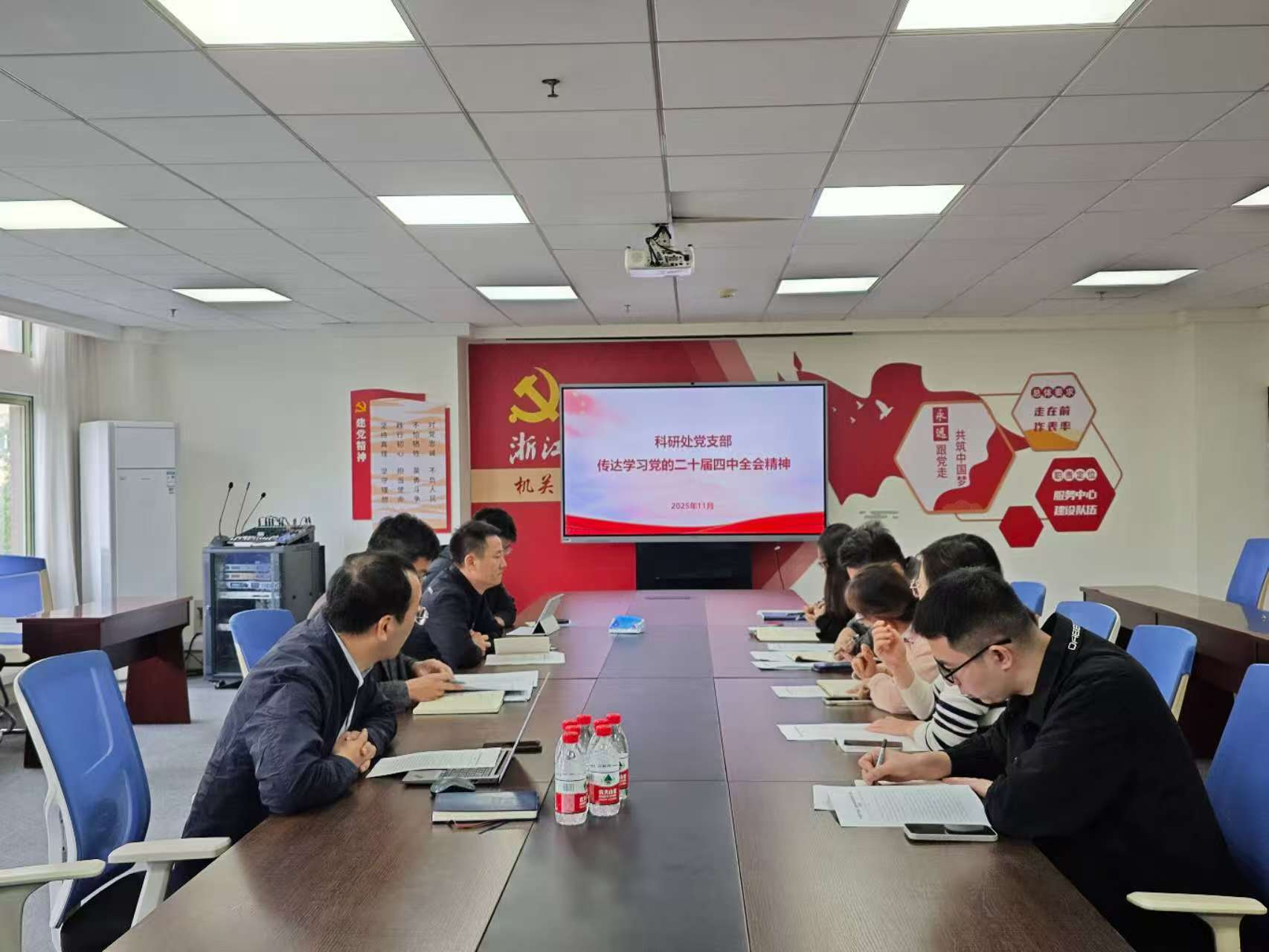 为深入学习贯彻党的二十届四中全会精神,谋划“十五五”科研高质量发展,推动党建与科研深度融合,2025年11月3日,科研处党支部在行政楼312会议室召开专题学习会,集中学习《中国共产党第二十届中央委员会第四次全体会议公报》精神,支部全体党员参加活动。